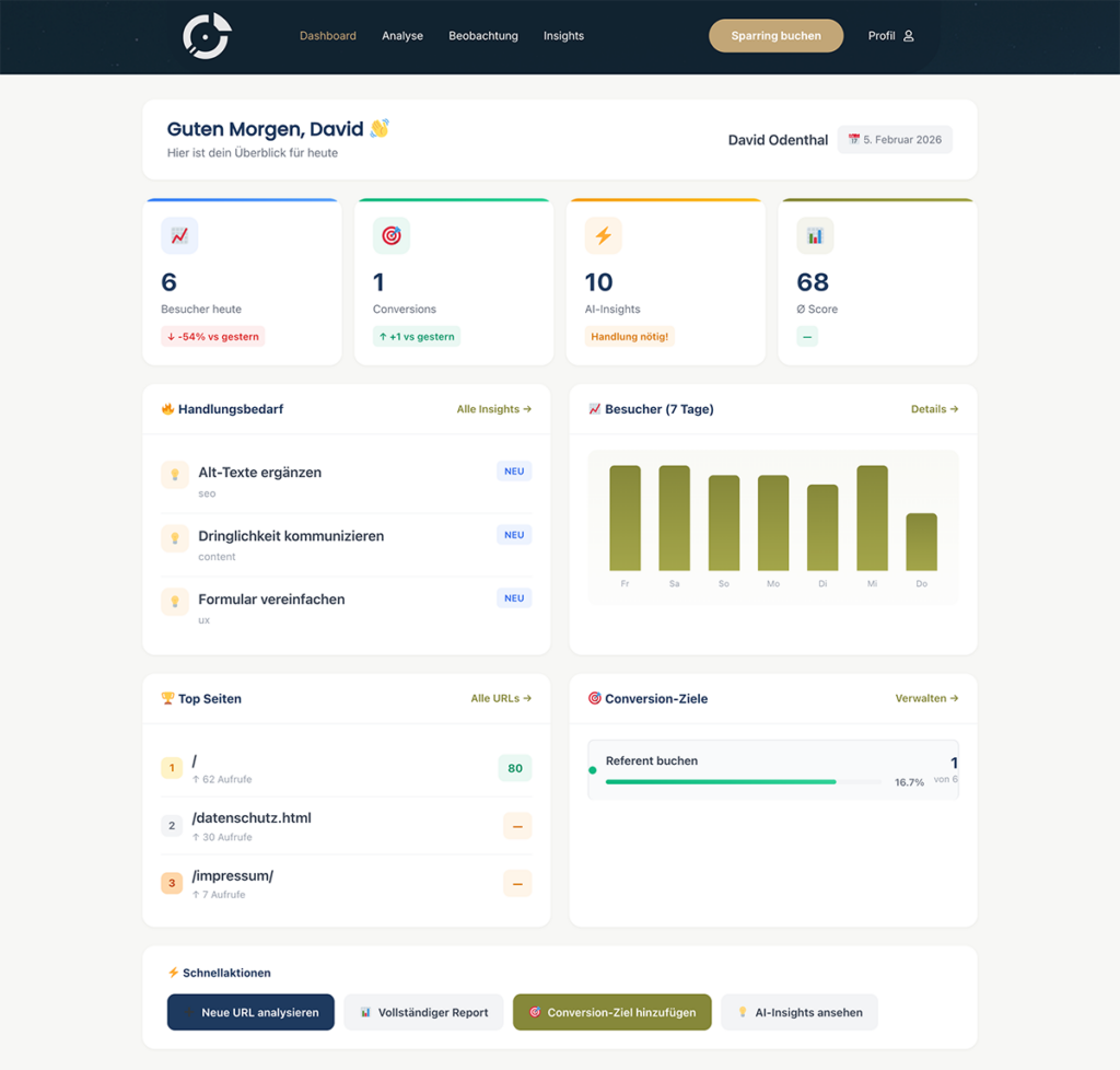 Schluss mit komplizierten Tools – eine Plattform für Tracking, Analyse & Kunden-Audits.“